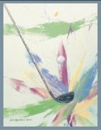 Hit to the Green Acrylic/Oil on Masonite 28” x 22” $700 The impact design shows a stop-action effect when the club head strikes the ball with the explosive array of paint strokes in vibrant hues. |